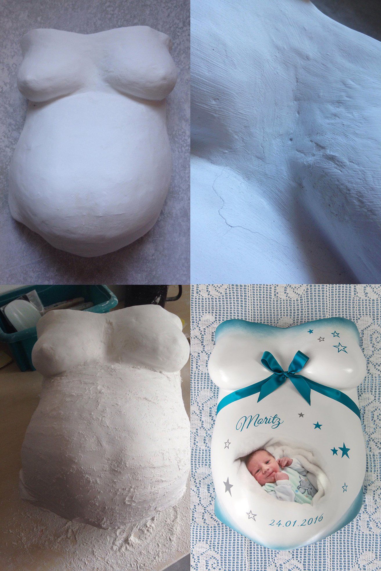 Die Anfertigung, Bemalung & Gestaltung von klassischen Babybauchgipsabdrücken zum Aufhängen.