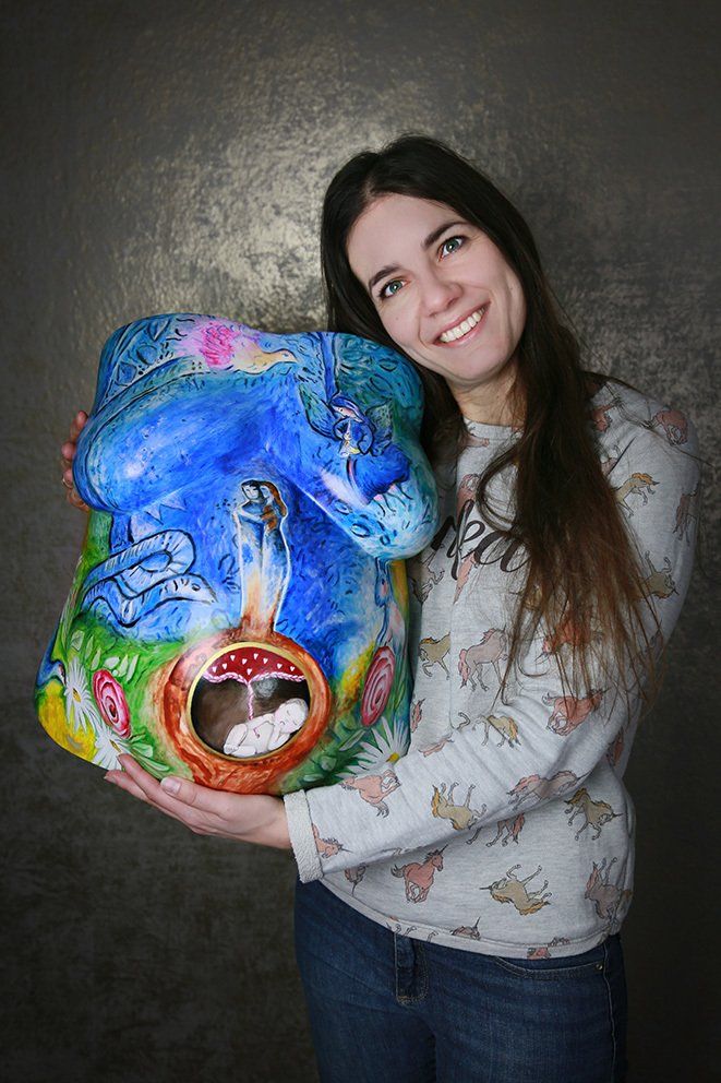 Die Überarbeitung, Bemalung & Gestaltung von selber abgeformten Babybauchgips- abdrücken.